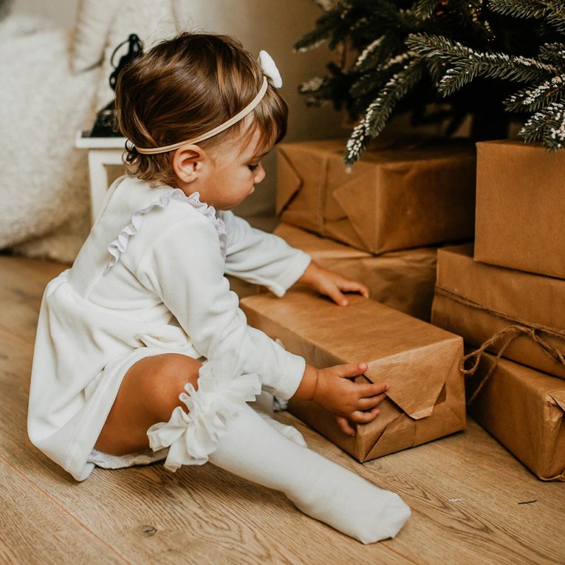Ecru velvet girls dress with frills – Ceremony Collection