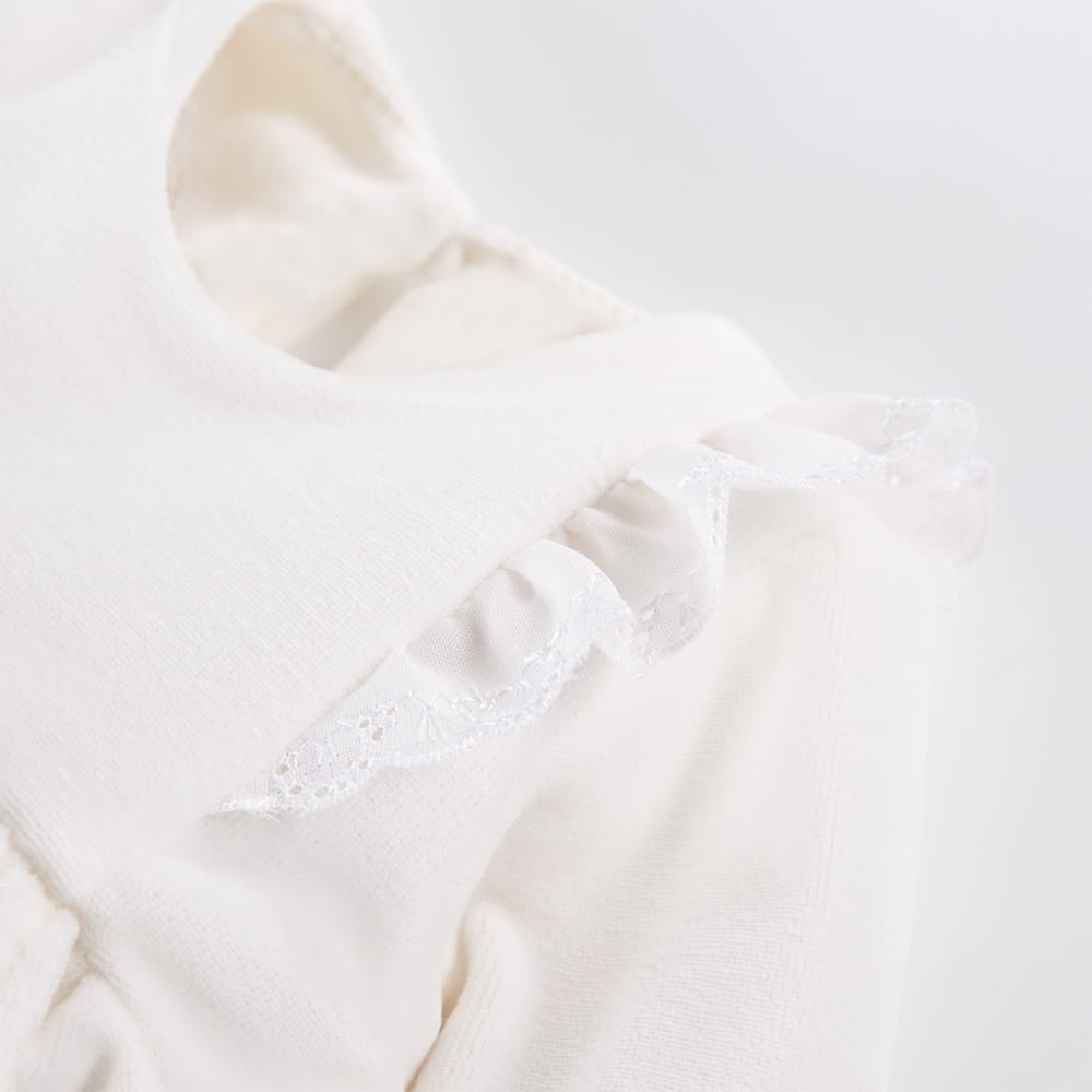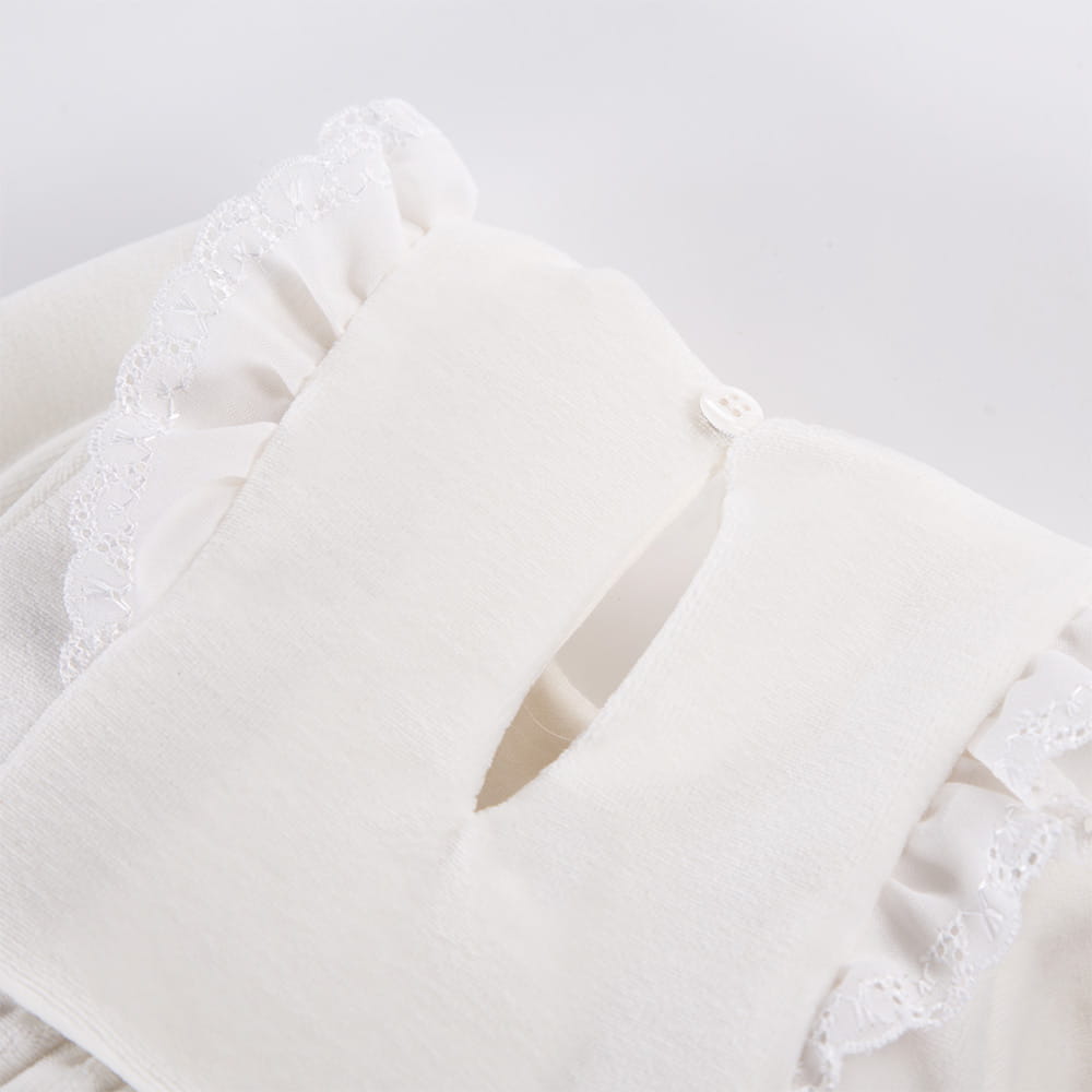 Velvet dress with frills ecru