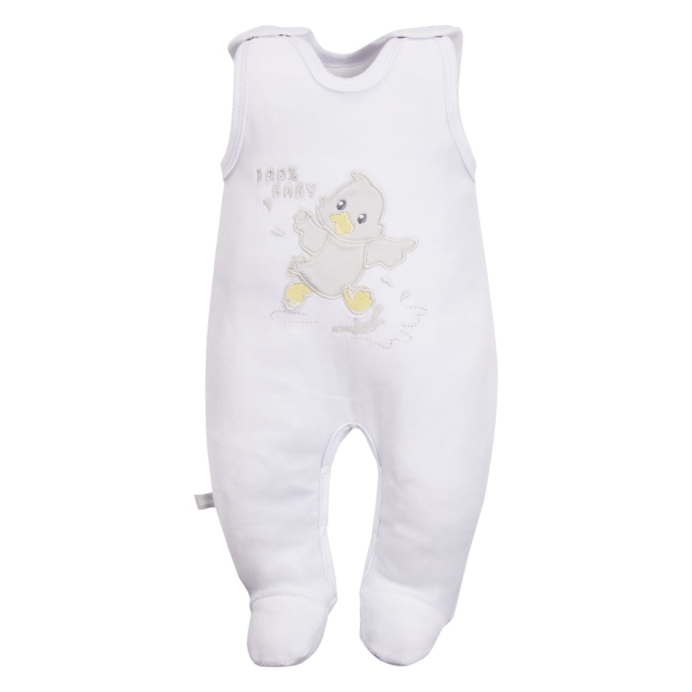 Velour baby set from the Newborn collection, consisting of baby pants and a wrap top, is a perfect choice for newborns and infants. Finished in a classic white color and decorated with a delicate duck embroidery, it combines a gentle design with maximum comfort.