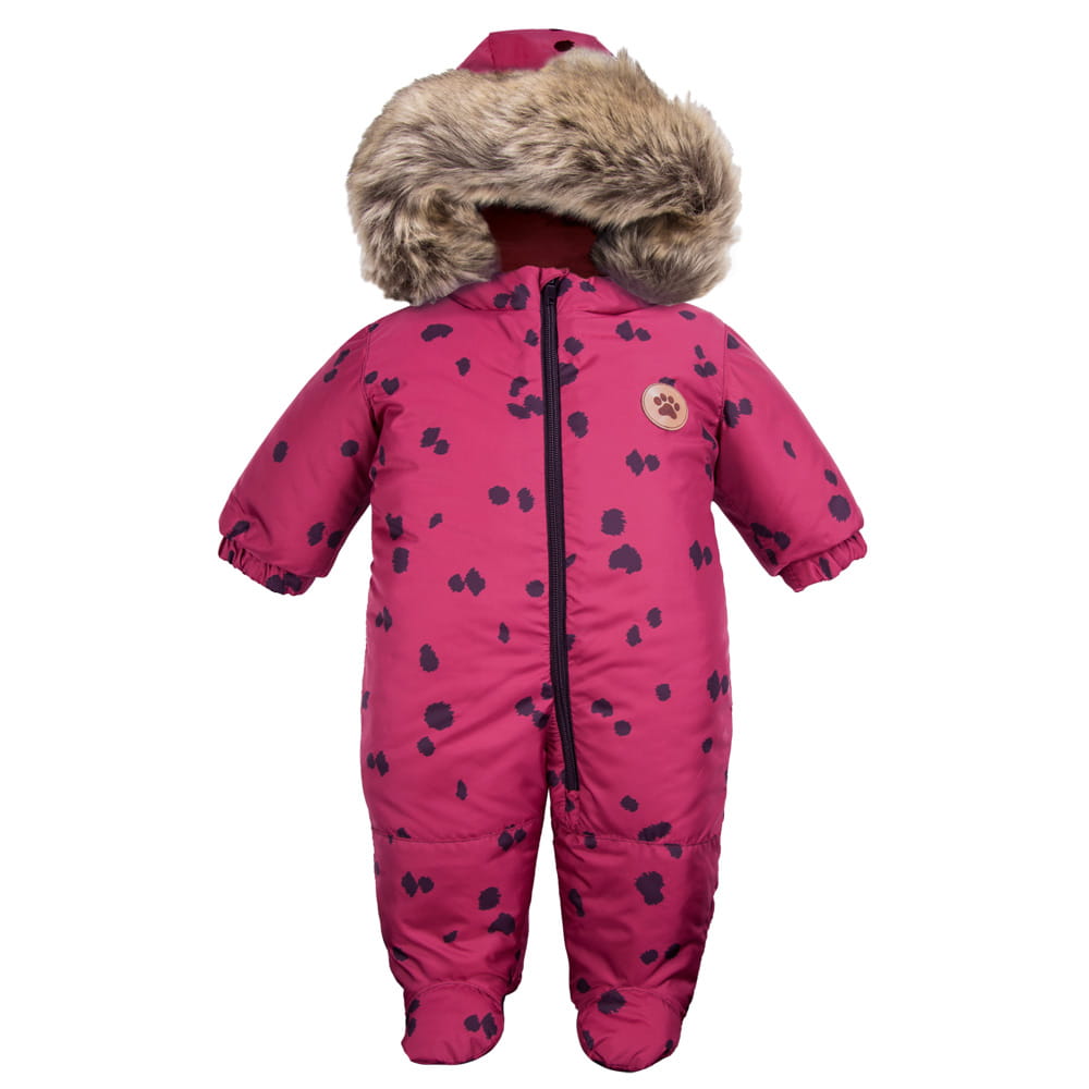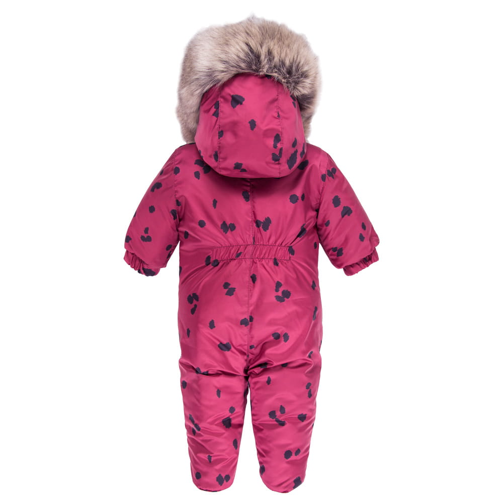Winter baby jumpsuit raspberry pink with dalmatian pattern